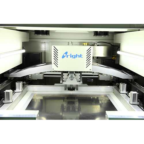 自動調節步進馬達驅動的印刷頭。雙邊雙滑 系統。可調節亮度功能,可識別各類型的Mark點,焊點、