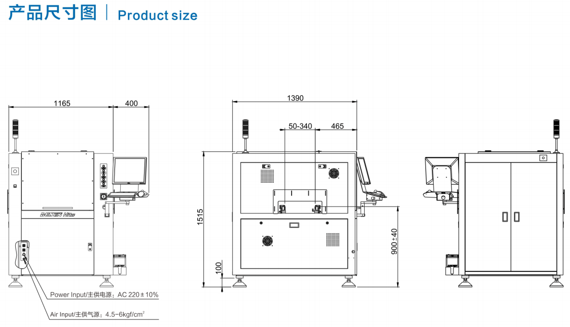 機器外形尺寸  | 1165(L)X1390(W)X1515(H)mm  | |